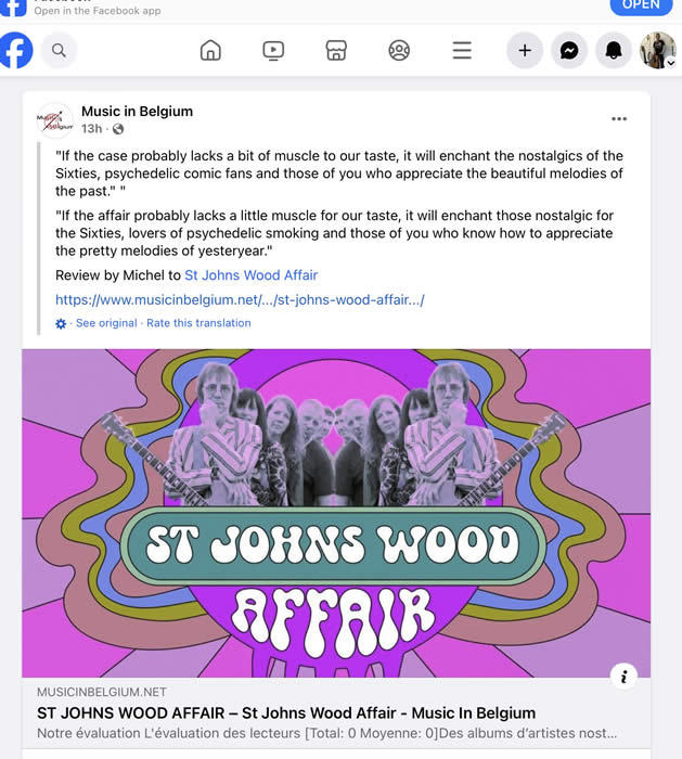 9th December 2023. I read that ST JOHNS WOOD AFFAIR got a good review of our album in Belgium! So glad they understood what we were trying to acheive with the music.