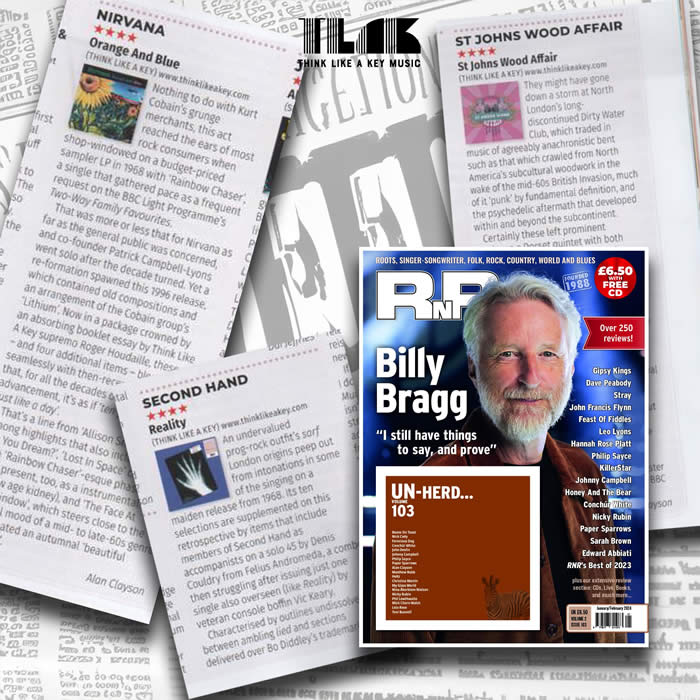 January 2024. INTERNATIONAL POP OVERTHROW have picked their top 150 albums of 2023! Good to see that ST JOHNS WOOD AFFAIR are in at number 50! January 2024. The current issue of RNR magazine (January/February 2024) have a four star review of ST JOHNS WOOD AFFAIR album! In he same issue there is also a good review of the Nirvana album ORANGE AND BLUE, that I also appear on!
