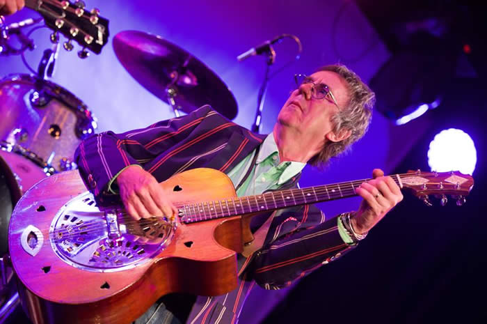 Above : Singing Memory of a free festival with Tony Visconti, Woody Woodmansey, Maggis Ronson, Phil Rambow and some of the other band members who played. 11th August 2018. Keith played at the Sidmouth Folk Festival. He played a set of Ronnie Lane songs backed by Adrian on guitar.
