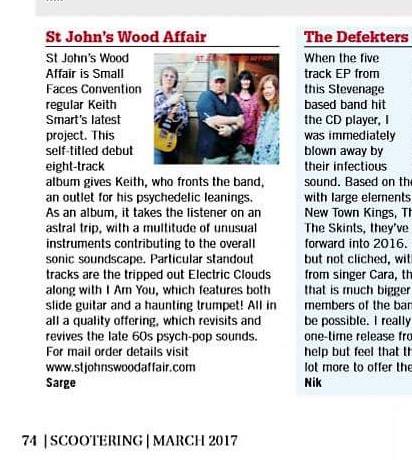 March 2017 : The ST JOHNS WOOD AFFAIR album received a good review in the March edition of Scootering magazine.