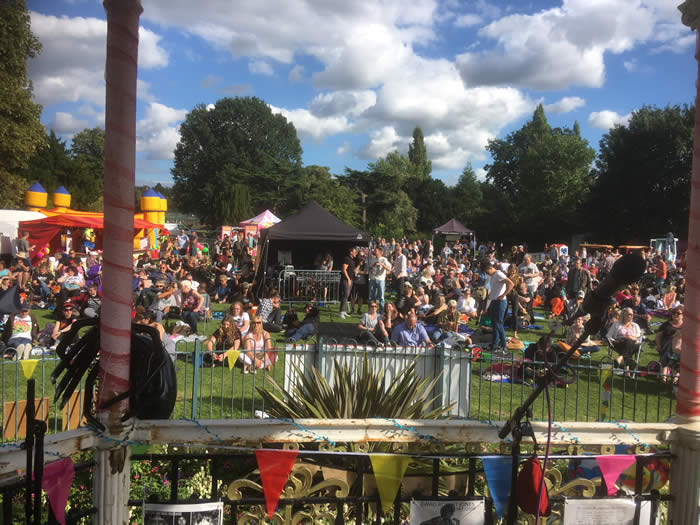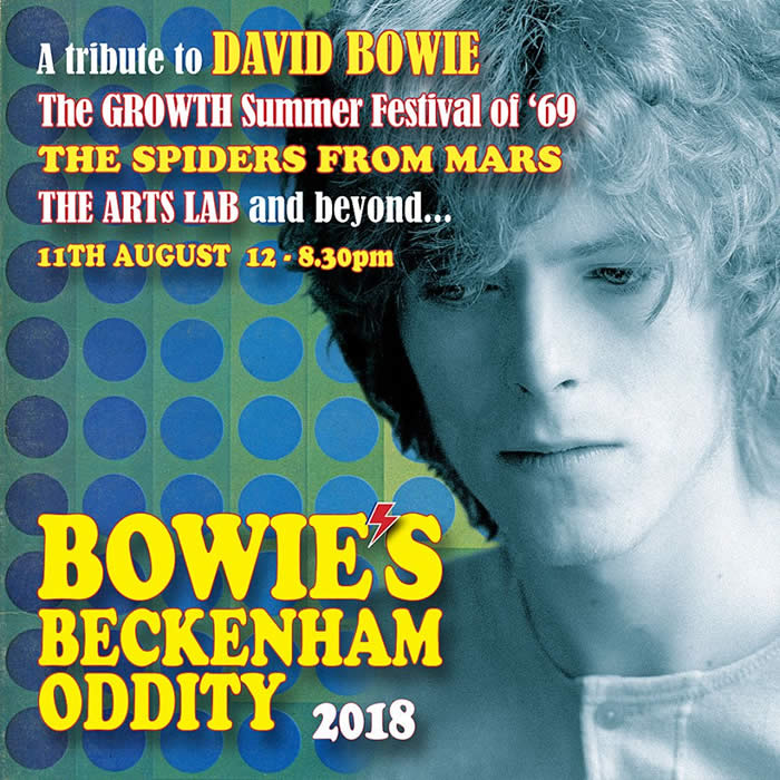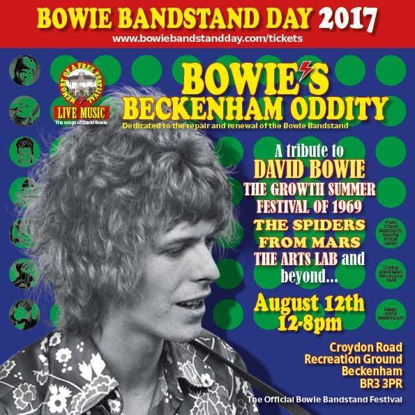 Above : On stage at the Ronnie Lane book launch. 12th August 2017 : ST JOHNSWOOD AFFAIR played at BOWIE'S BECKENHAM ODDITY FESTIVAL, in Beckeham. We played a set of our own songs, plus a few Bowie songs. Lovely setting and a fab audience.