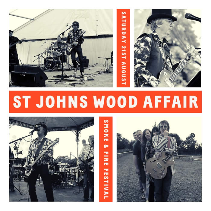 ST JOHNS WOOD AFFAIR have been invited to play at the Smoke and Fire festival in Essex. We are on the main stage 1PM on 21st August 2021. See you there!
