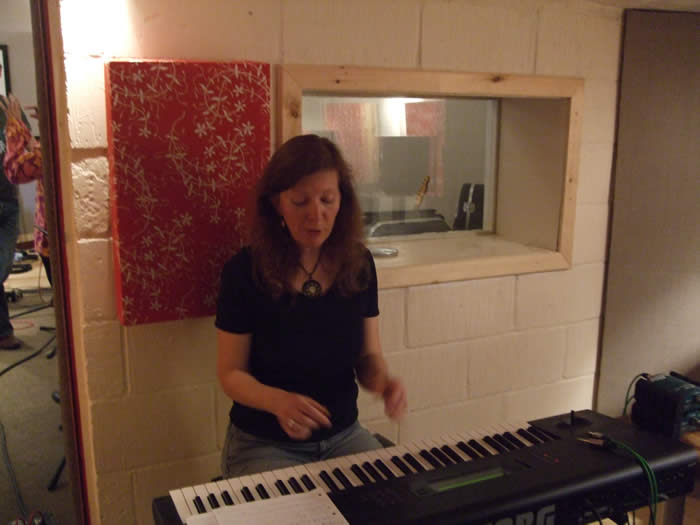 Above : Carlton manages to turn my guitar volume down in his monitor. Above : It's 10.25PM and Francine is adding her backing vocals. Above : Anne with Korg M1 keyboard in the control room.