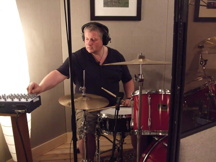 Above : Carlton laying down the drums.