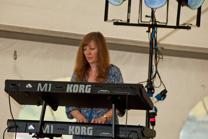 Above : Anne adding some keyboards. As well as the Korg M1, she has been using a Nord. 18th August 2019. ST JOHNS WOOD AFFAIR played at the SMOKE AND FIRE FESTIVAL, in Maldon, Essex. We had a super time and loved playing to the crowd. Thousands attended the event.