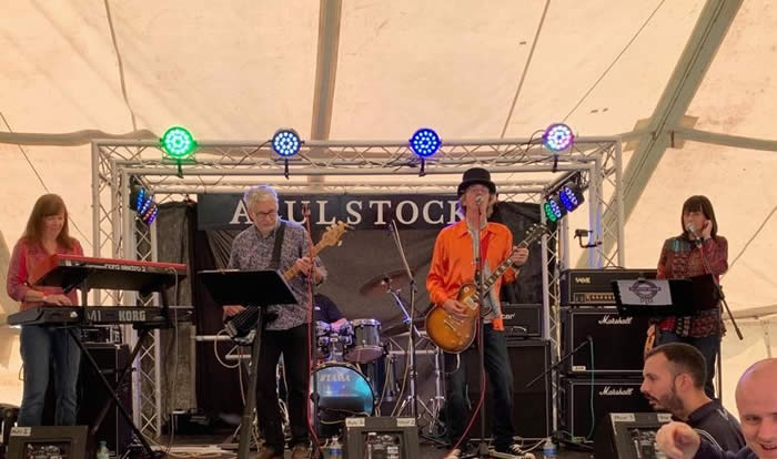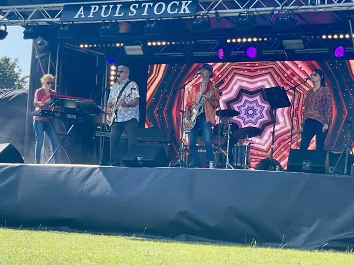 Above : Ready to rock! 23rd July 2017 : ST JOHNS WOOD AFFAIR had a fab time playing at Apulstock. Great crowd.