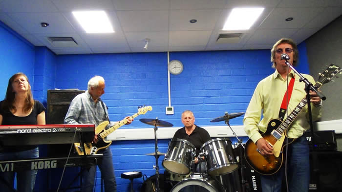 Above : Steve Simpson, Glen Matlock, Keith and Billy Nicholls on stage. Photo by David Coombs.