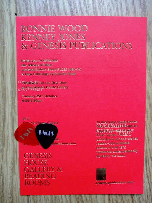 25th October 2011 : Francine and Keith were invited to THE FACES book launch and also a preview of Ronnie Wood's latest paintings. Ronnie Wood, Kenney Jones, Mick Hucknall and Sir Peter Blake were there.